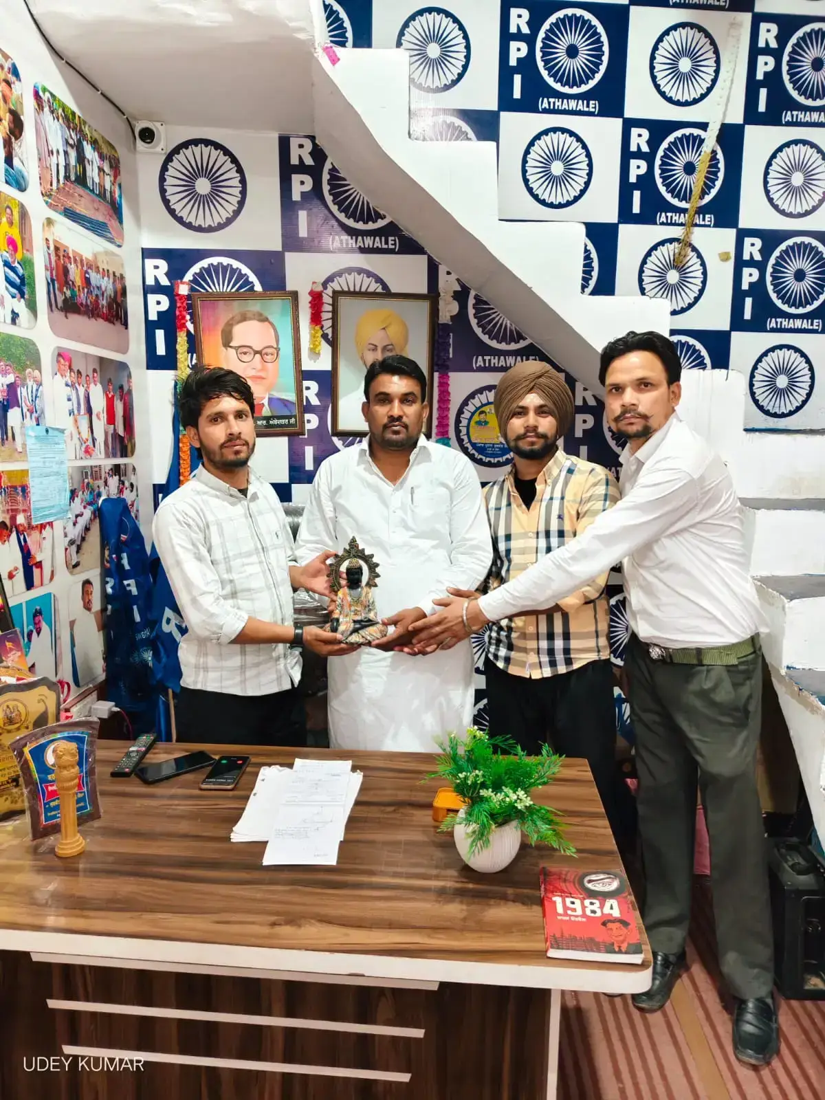 Kulwant Singh Bhaikera was honored with a Lord Buddha statue by members of the Republican Party of India (RPI), symbolizing peace and recognition of his dedication to social justice and community welfare.