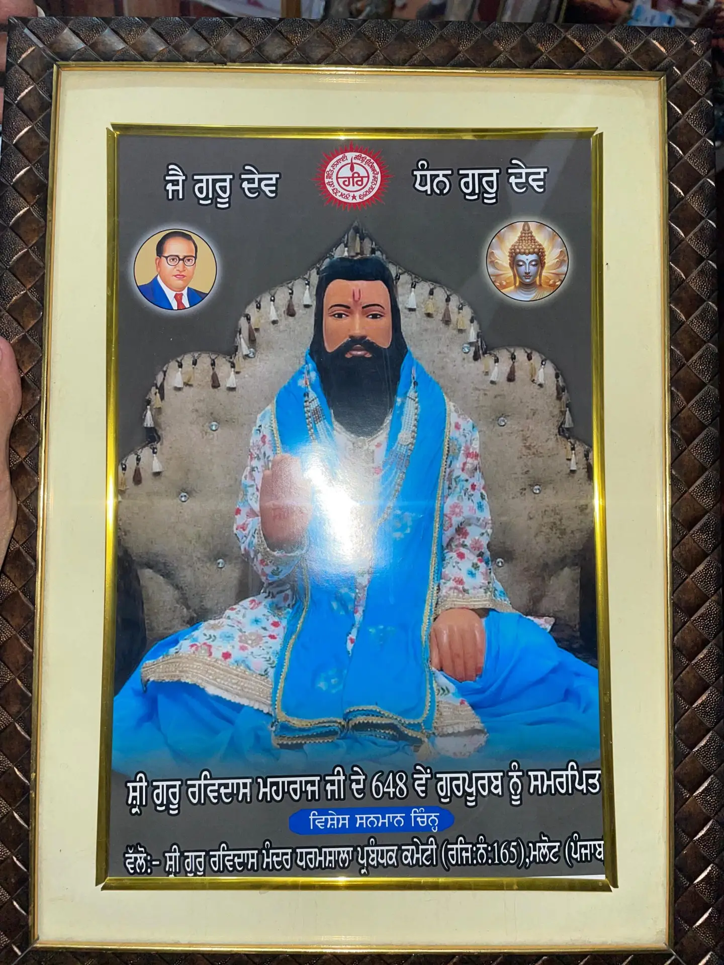 Honored with Guru Ravidas Ji’s Photo At Sachkhand Dera Ballan Sahib, Sant Niranjan Dass honored Kulwant Singh with Guru Ravidas Ji’s photo, recognizing his dedication to social justice and the teachings of Guru Ravidas.